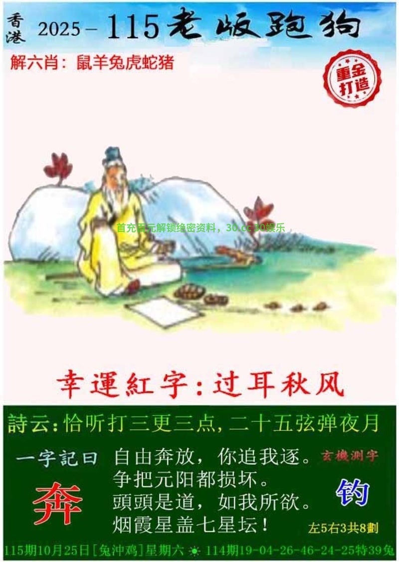| 115期:三行中特【火.土.金】开:蛇01准 |