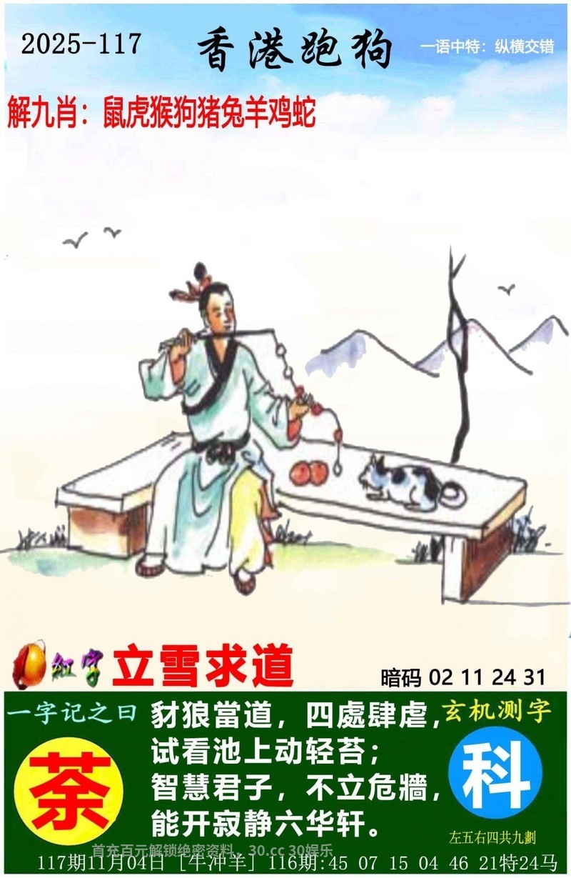 | 117期:三行中特【金.水.土】开:虎04准 |